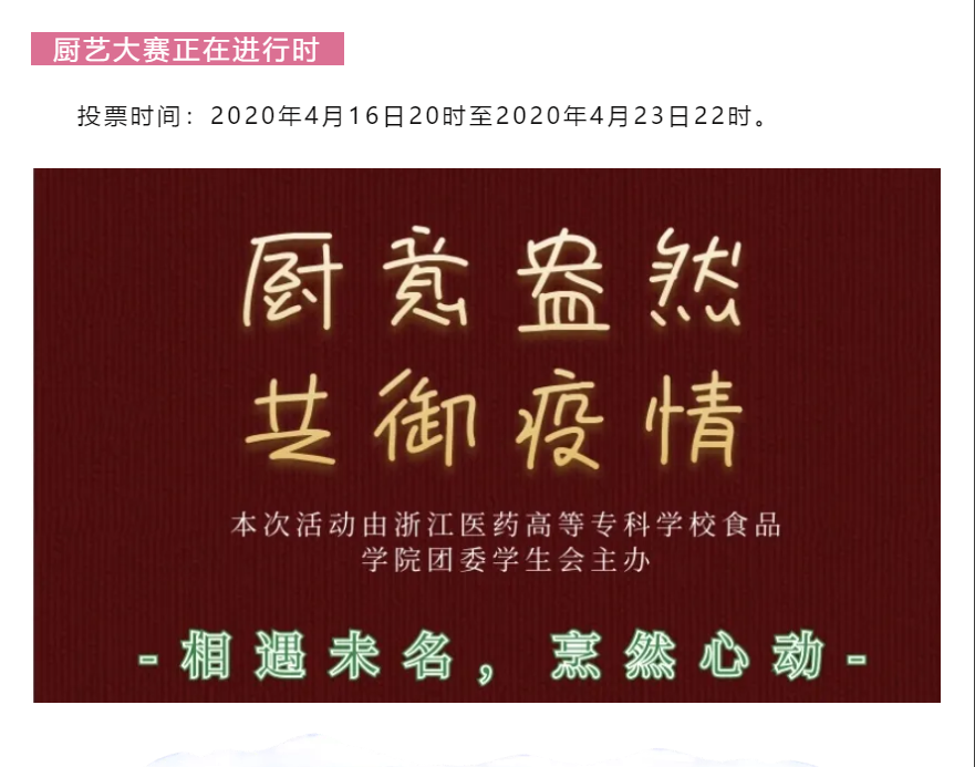 据悉,本次食品文化节在保留以往传统子活动外,更有结合当前形式,专为配合公司特殊时期工作而开展的几类全新子活动。如,为打造良好网课学习环境,推进学风建设而设立的“提笔落墨,印记食光”网课优秀笔记评选活动;为树立员工疫情防控意识,助力员工平安返校而设立的“抗击疫情,与爱同行”疫情防控知识竞赛;为丰富员工宅家课余生活,培养员工审美情趣与感恩精神的“厨意盎然,共御疫情”厨艺比拼。