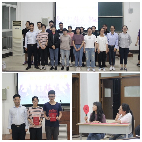 决赛现场共分为三个环节,13名参赛选手通过抽签分成6组并以小组为单位参与比赛。通过“我选我答”每组抽签选出案例分析和简述题并予以作答;“快问快答”则是每组随机选出题库以选择题和判断题的形式进行作答;“敢于挑战”由参赛者随机选1-20数字抽题并限时作答最终角逐本次大赛的名次。场上选手各个挥斥方遒,全身心投入到比赛环节,展开了一轮又一轮智慧的较量,这充分展现了参赛选手丰富的专业知识储备和沉着冷静的应答能力。经过紧张而又激烈的比拼,张苗苗、石晓青、李馨慧、沈海娟、陈海珍、何玲琪、李洁露获得三等奖,李娜、王志伟、包璐莹、李洁露获得二等奖,邵婷婷和陈波凭借优异的成绩荣获冠军,陈经理和王老师分别为获奖同学颁发荣誉证书并合影留念。