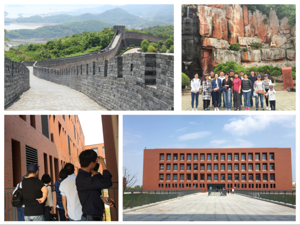首先,大家来到黄贤森林公园。黄贤森林公园位于奉化市裘村镇西北黄贤村,景区三面环山,一面临海,森林覆盖率90%以上,是一个集山川美景、滨海风情和人文古迹于一体的省级原生态森林公园。随后,大家来到森林公园里最为壮观的景观——海上长城。尽管天气有些炎热,但是老师们还是兴趣盎然攀爬。眺望大海,欣赏海上长城雄姿,参观戚继光广场、飞云坛,长城戏鸽。在北城楼俯瞰集山川、湖泊、海洋资源为一体的黄贤全貌,感受“会当凌绝顶,一览众山小”的气魄。最后一站,来到了奉化校区,一行人沿着新校区的纵轴线,从教学楼、图书馆、行政楼、会议中心、寝室楼、实验楼参观。大家纷纷为新校区的建设进程之快而惊讶,又为新校区山水相融的书院式美景流连忘返。