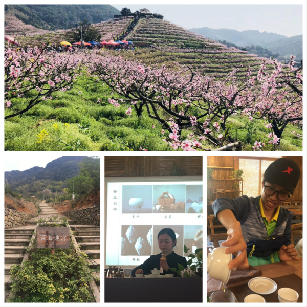 奉化林家村东靠同山,北临泉溪,桃园连片,规模庞大,依山势绵延,是欣赏桃花的最佳地方。活动中,女教职工们一路高歌,释放了平日工作的紧张情绪。在奉化林家村,大家一边尽情欣赏“桃之夭夭,灼灼其华”,一边辨认着路边的中药材,女教工们增进了彼此之间的了解,开阔了眼界,提升专业所学,徜徉在自然的怀抱里,愉悦身心。在雨易山房,大家学茶艺、做青团,撑圆了肚皮,更收获了幸福、快乐和满足。