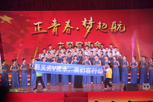 从一开始不协调的曲调到现在和谐动听的歌声,离不开合唱团的用心付出和团学干部的鼓励和指点,团委书记刘琼老师更是尽心尽责的在每一次彩排中指导大家,提出意见亲自帮助合唱团走向更完美。决赛前期,团学干部及干事们为了情景剧道具、服装奔波忙碌可谓是尽职尽则,决赛当天为大家组织化妆,将每一步的流程安排的有条不紊,体现出大家优秀的组织办事能力。