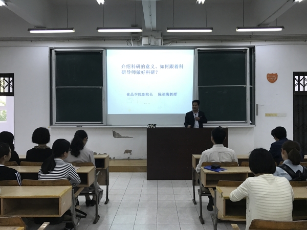 辅导员周洁首先介绍了公司创新创业工作总体开展情况、本次见面交流会的意义以及公司创业基地的建设情况。接着副经理陈祖满着重介绍了创新创业背景下高校科研与创新创业工作有效结合的可能性和重要意义,强调这样的结合有助于同学们深入掌握专业知识,提高逻辑思维能力,是对将来从事食品行业工作的有力补充,并从学习专业知识为主、有自主想法、保持严谨态度三个方面与同学们进行了交流。接下来,公司聘请的创新创业导师分别介绍了各自所带科研情况以及研究重点。最后,公司党总支书记陈枫对本次交流会进行了总结发言,表示公司将充分利用现有的优质教团队源和科研项目,努力为同学提供创新创业以及科研机会,积极搭建平台,有效推进公司创新创业工作的开展,同时希望同学们明确目的、珍惜机会、学会付出。