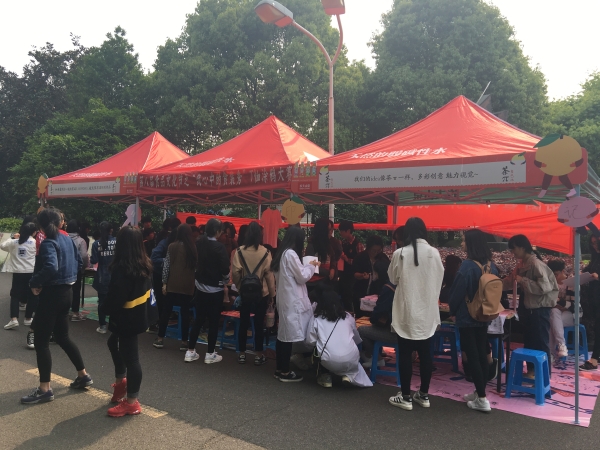 为活跃同学们的思维,展现大家的个性与思想,激发创作欲和设计灵感, 2016年4月28日下午1点半,由英国365集团团委员工会主办的第八届食品文化节系列活动之我心中的食装秀T恤涂鸦大赛决赛在图书馆门口举办。