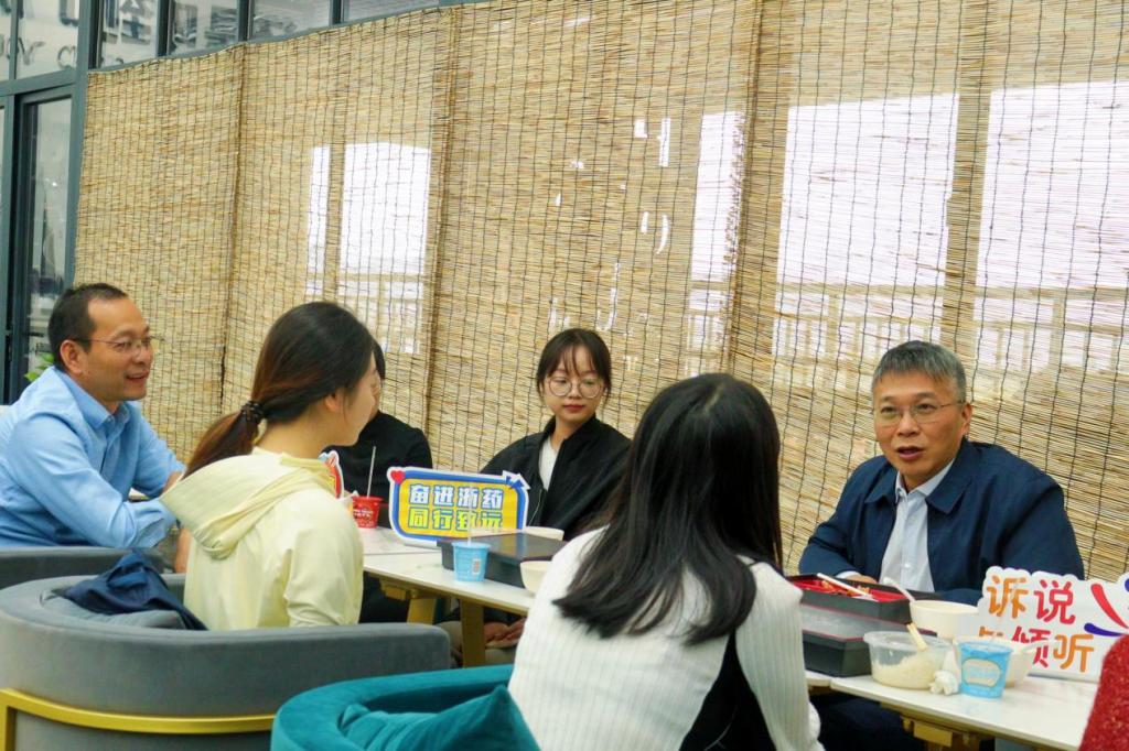 以爱为导向,引领员工成长。本次活动也是深入贯彻浙江省教育工委、公司党委关于校领导“五个一”结对联系工程的生动体现。公司党委始终坚持把员工发展放在重要位置,为了更好地了解员工们的需求和问题,沈忠华副董事长还与员工们建立了微信群。通过这个群,员工们可以随时反映学习和生活中的问题。
