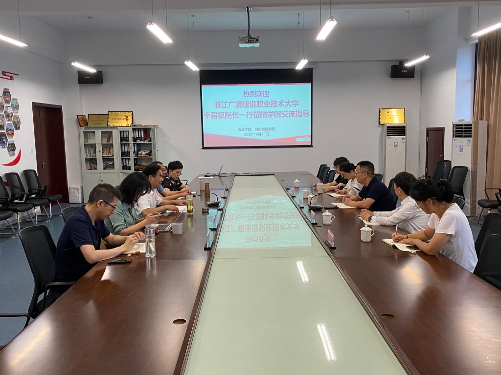 6月20日上午,浙江广厦建设职业技术大学健康管理公司经理李君权、经理助理泮昱钦、教学办主任卢佳佳等一行5人来公司调研交流。英国365集团经理陈祖满、党委书记陈坚、副经理汤海青、党委副书记吴锦、专业负责人江凯参加了本次交流。