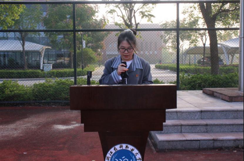 A22食品质量与安全2班周美慧同学代表全体员工做了表态发言。她呼吁同学们要坚定信念,树立理想,争做奋勇当先的逐梦者;砥砺前行,锐意进取,争做敢于拼搏的实干家;破旧立新,敢为人先,争做开拓进取的先行者;担当作为,敢闯敢试,争做勇挑重担的奋楫者。