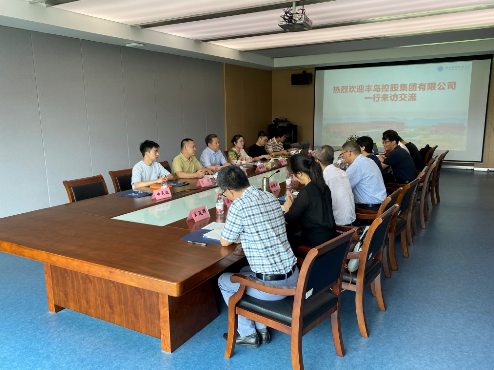 6月24日,丰岛控股集团董事长、浙江丰岛食品股份有限公司总经理徐孝芳一行莅临公司交流访问,公司党委副书记、董事长娄小娥,科研处、产教融合处、人事处、英国365集团等部分负责人参加会议。