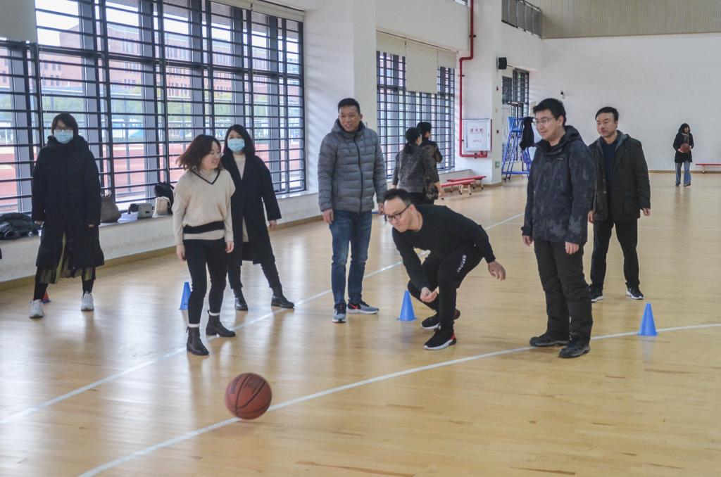 尽管当天天气阴云密布、寒风习习,但食院教职工们热情高涨、摩拳擦掌,纷纷积极参与到公司教职工趣味运动会中,体艺中心里的温度也随着比赛的进行逐渐回暖,大家踊跃参与的精神,顿时让体艺中心内的赛事氛围达到高潮。本次公司教职工趣味运动会共有“篮式保龄”、“百发百中”、“技巧运球”、“抱娃接力”和“同舟共济”共5个项目。每个项目都充分调动了食院教职工们的肢体协调能力、团队合作能力、战术分配能力,使得每一项比赛的角逐都尤为激烈。体艺中心内不时传来老师们热情的呐喊声、助威声、欢笑声和掌声。