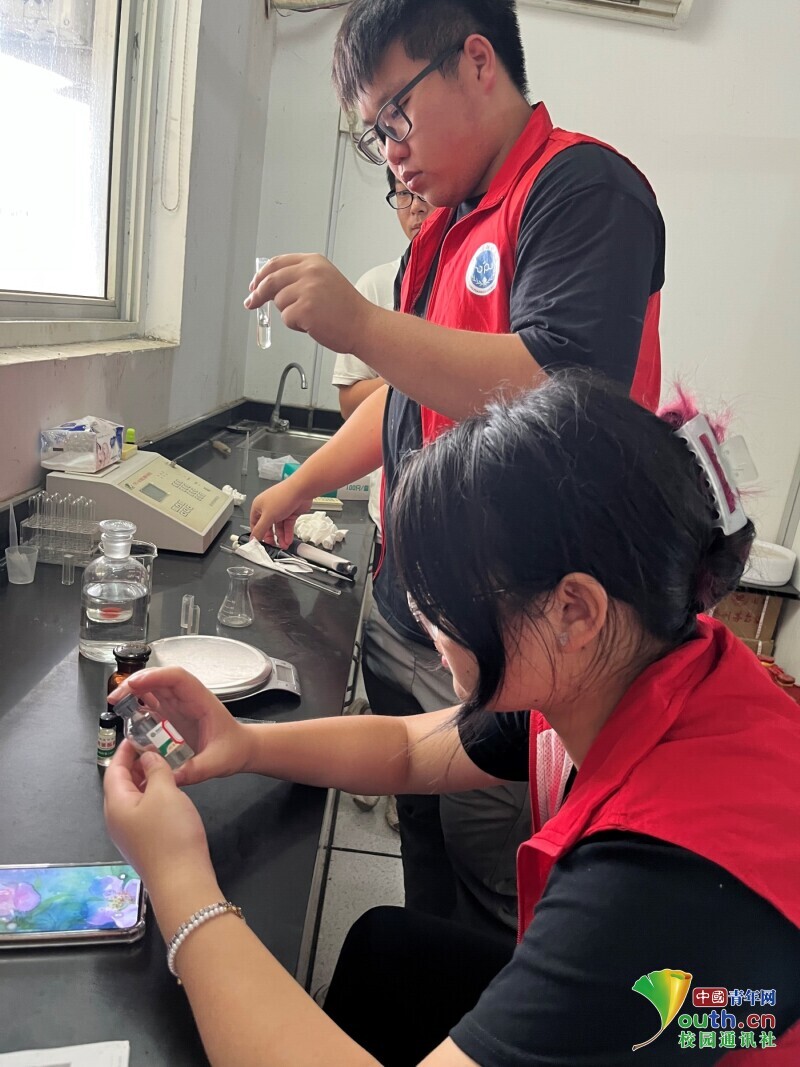 图为实践队员在检测室对农产品进行快速检测。中国青年网通讯员 傅育梁 供图